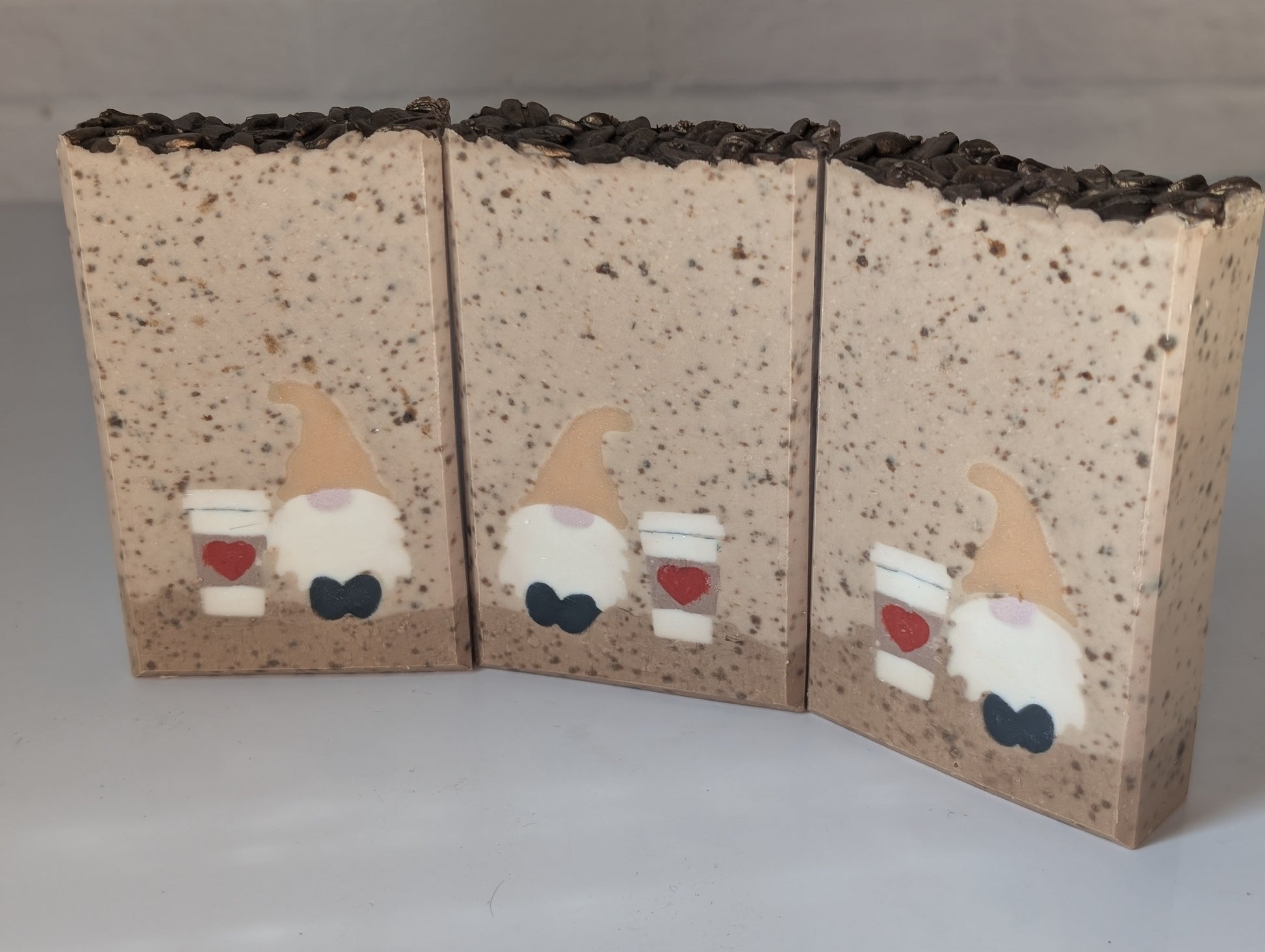 ❤️ Love in Every Lather: Celebrate your love for coffee with our adorable "Coffee Lover" soap. Adorned with a to-go coffee cup and a charming little gnome, it's a delightful reminder of the love affair between you and your beloved brew. Each time you lather up, it's a sweet moment of self-care and self-indulgence. This bar smells just like a Vanilla Latte with cream and sugar.