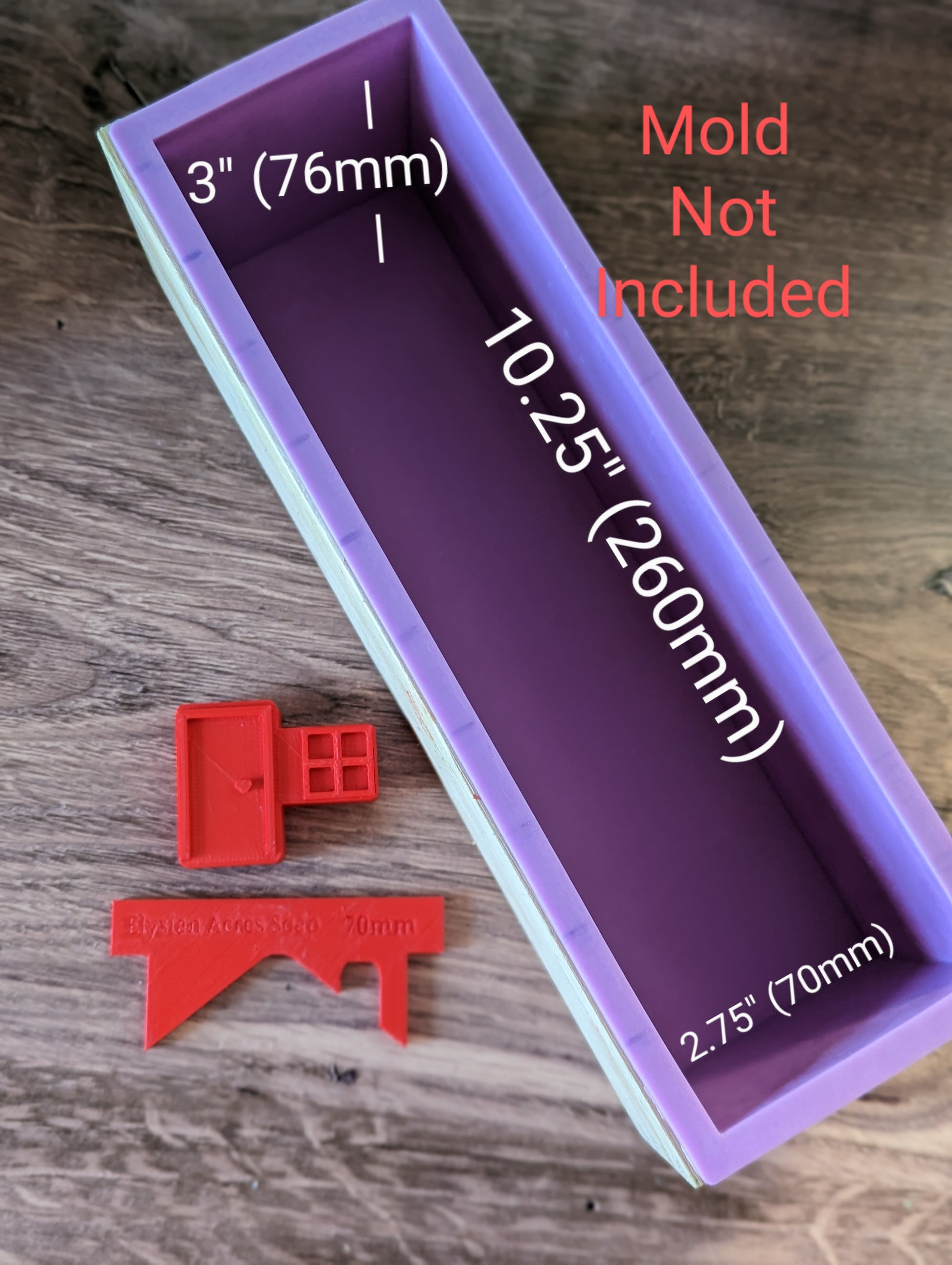 This set is currently available in only one size option. The width of the scraper is 70mm, which perfectly fits one of the most commonly used molds on the market, the "purple molds" that measure 2.75"W x 10.25"L x3"H (70 x 260 x 76mm). The finished bars in this size weigh approximately 4.3oz (121g) when freshly cut at a width of 1".