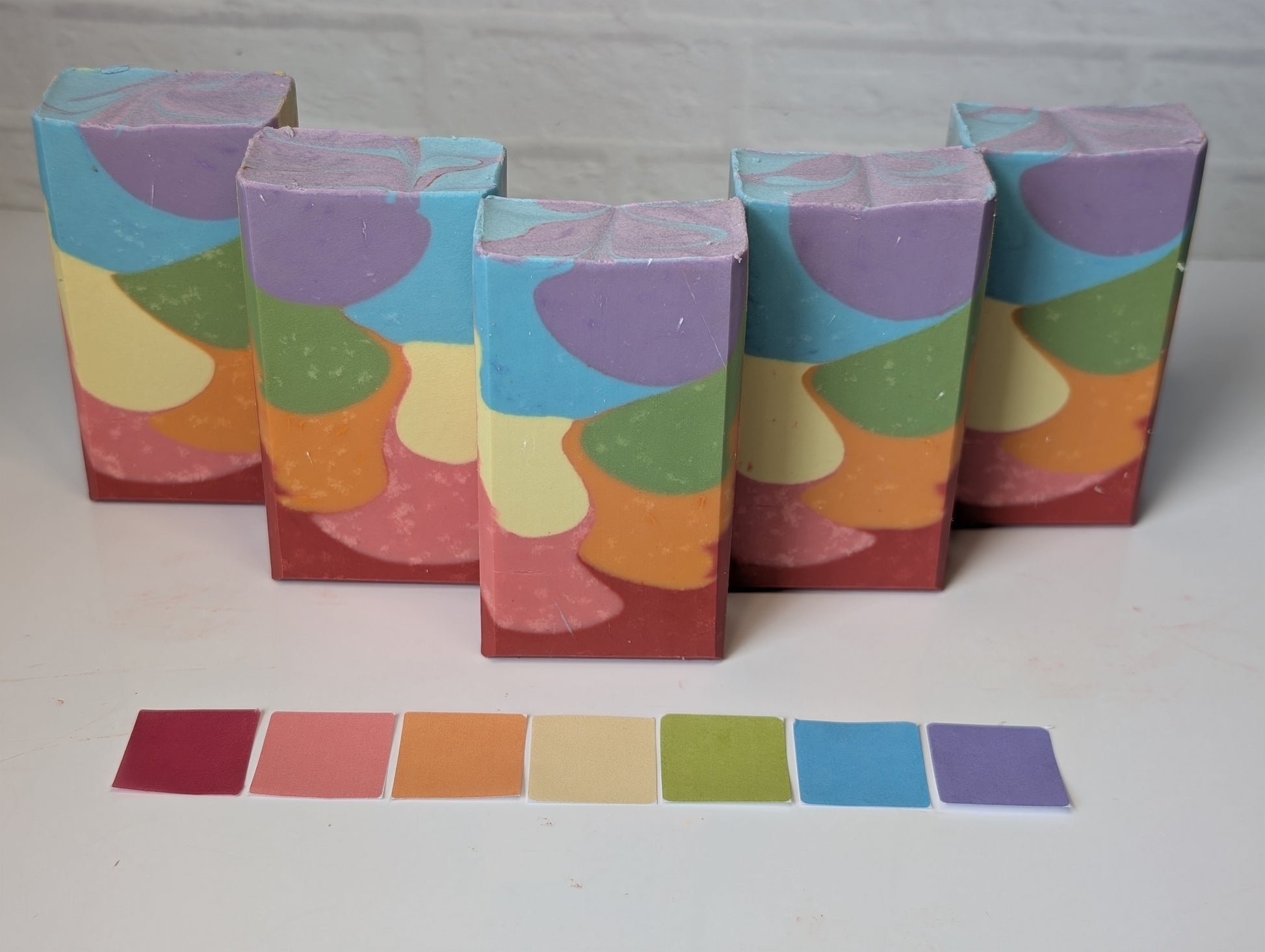 These rainbow bars are scented with an absolutely lovely tea fragrance, full of tart, sweet, floral bergamot notes that combine with rich black tea to make a scent reminiscent of Earl Grey. This is the type of tea you would sip while sitting at a table with your best friend in the afternoon. Both floral and rich, it is tea fit for a king or queen.