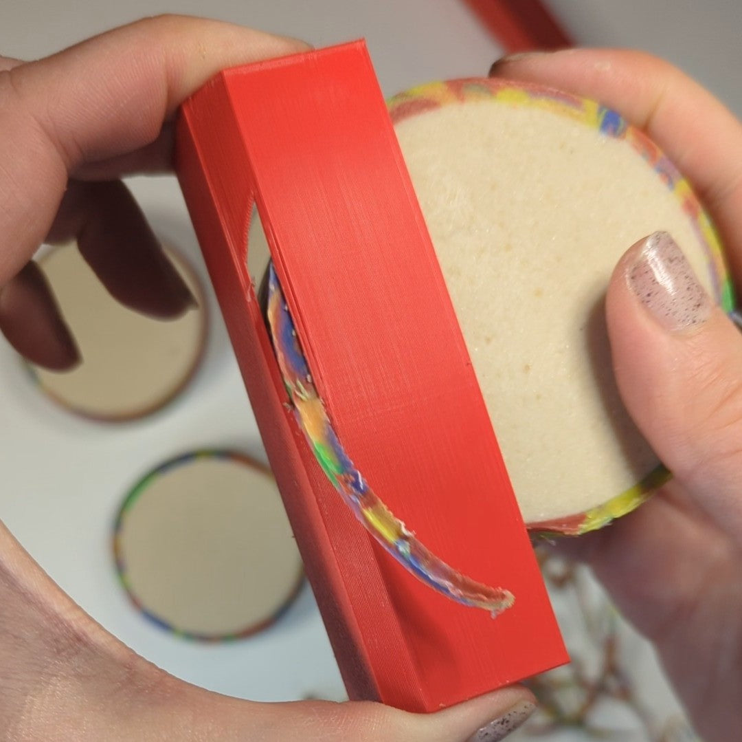 This Beveler allows you to add a clean, consistent 4mm-wide edge to your round soap bars every time. The 3d printed custom design ensures precise beveled edges with ease, and there are no dangerous sharp blades involved! Beveler can trim round bars up to 3.5" (89mm) in diameter.
