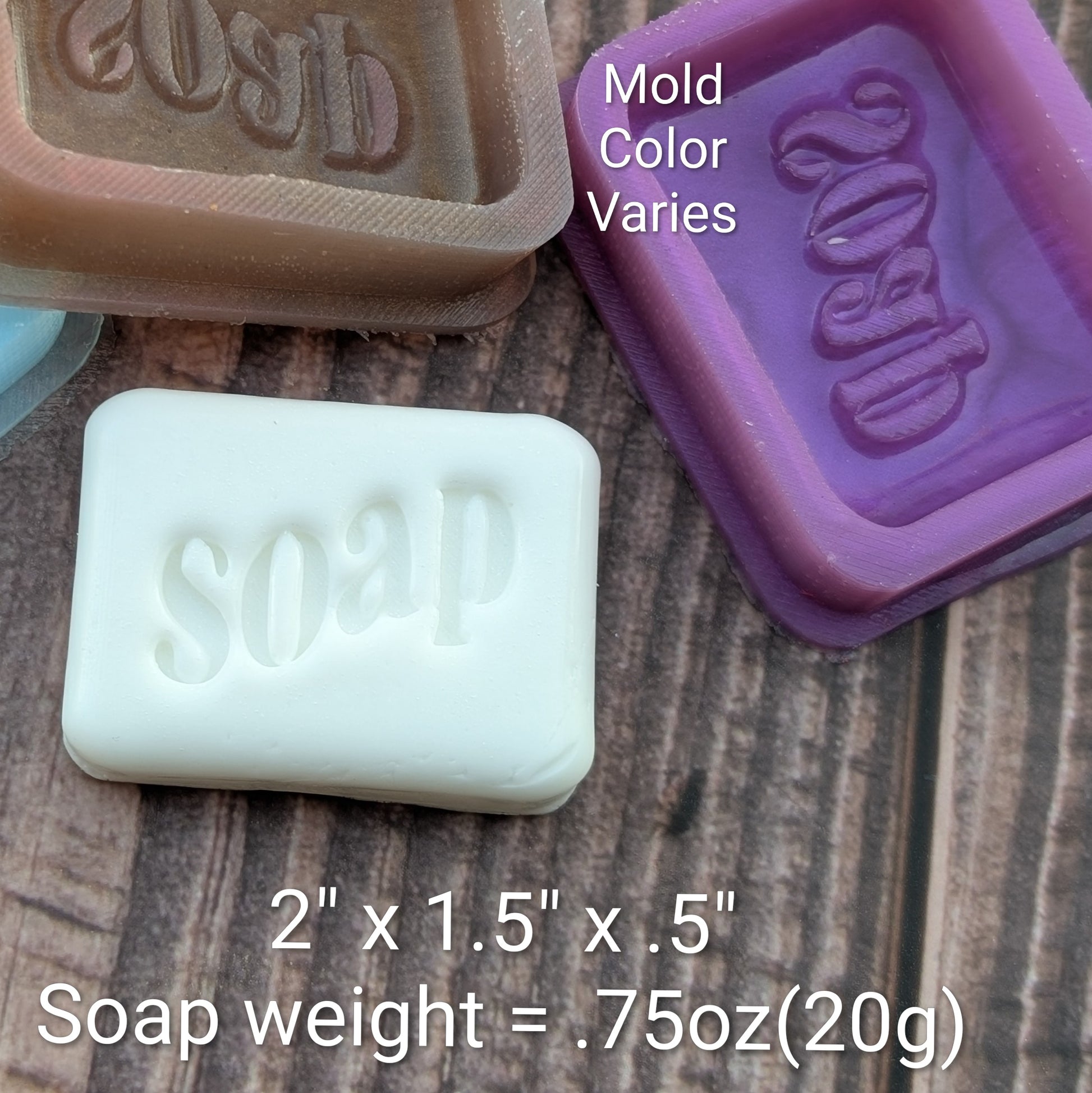 "Soap" Mini Mold creates bars that are 2" x 1.5" x .5", and they weigh approximately .75oz (20g)